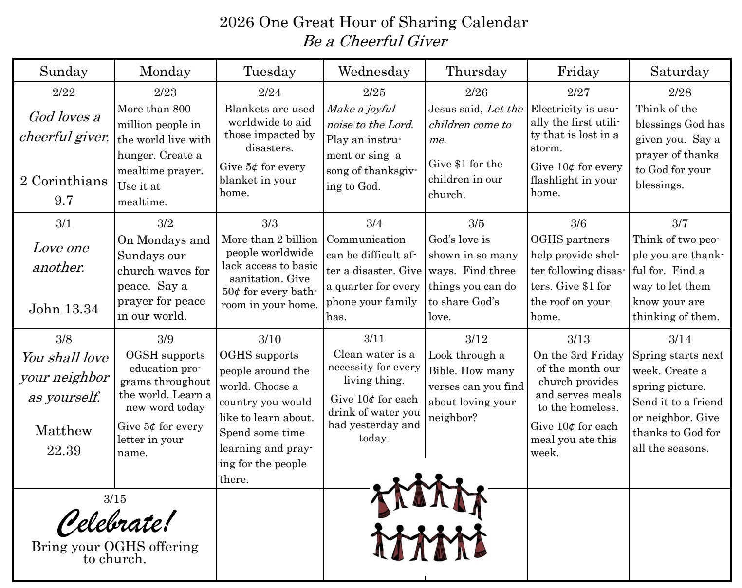 Sunday, March 15: One Great Hour of Sharing Sun.